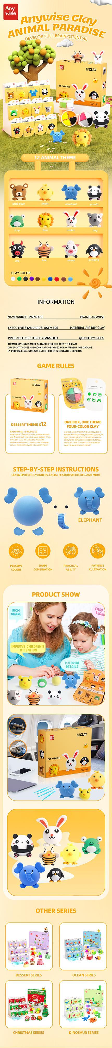 Anywise Air DIY Clay - Cute Pet Team Air Dry Clay 12 Boxes - Soft & Ultra Light, Safe & Non-Toxic - Ideal for Crafting & Educational