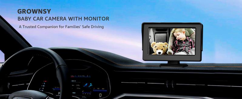 - Featuring HD technology, night vision capability, and 120°wide viewing angle. GROWNSY baby car camera with monitor is your best driving safety companion that goes beyond traditional baby car mirrors! Allowing you to easily monitor your baby in the backseat both day and night. You can keep an eye on your baby without constantly turning your head to check on them. Now, Enjoy a stress-free drive with our baby car camera.