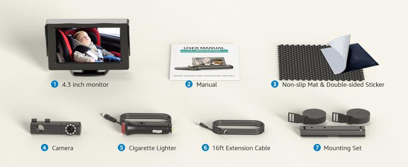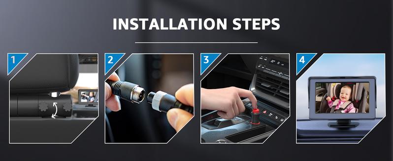 - : Installing grownsy baby car camera is a breeze. With no tools required, the camera can be easily fixed to the headrest, saving the hassle of strapping the mirror to the seat. We also provide a non-slip mat and extra strong double-sided tape to fix the monitor and it can be plugged into the cigarette lighter with a power cord. It's a wonderful baby shower gift.