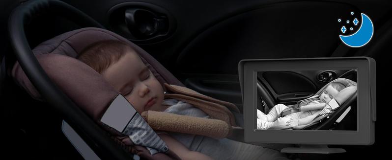 - Unlike traditional baby car mirror, our car camera for baby comes with a night vision function that automatically turns on in low light conditions, our beefed-up night vision feature and real-time monitoring provide you with a clear view of your child's movements and activities at night you can rest assured that your baby is always in sight - even when you're driving alone with your little one at night. Banish your parenting worries on the road.