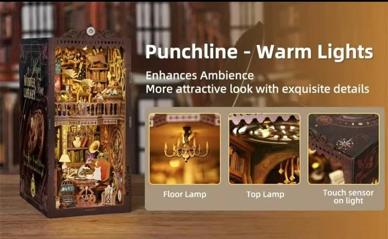 DIY Wooden Miracle Library Book Corner Kit, 1 Miniature Glowing Dollhouse Puzzle, Creative Gift Weix for Friends & Family, Glue & Electric Dust Cover Included ... Wooden Book Nook Kit Woodwork
