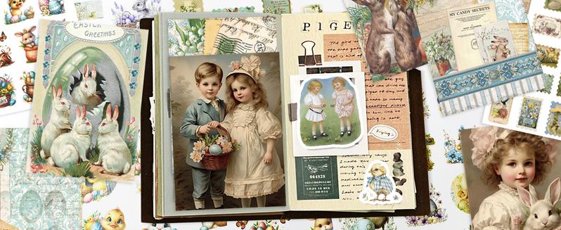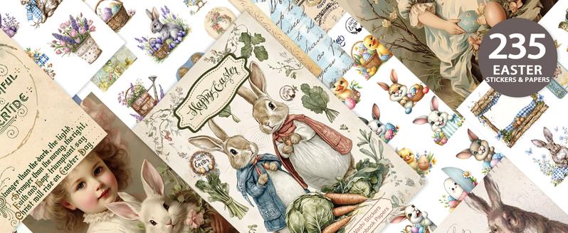 Fun & Festive Easter Designs These cheerful Easter Bunny-themed stickers and scrapbook papers bring joy to all your crafting endeavors.