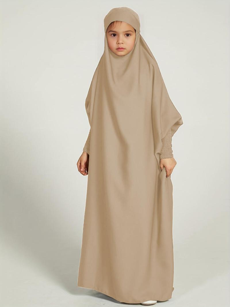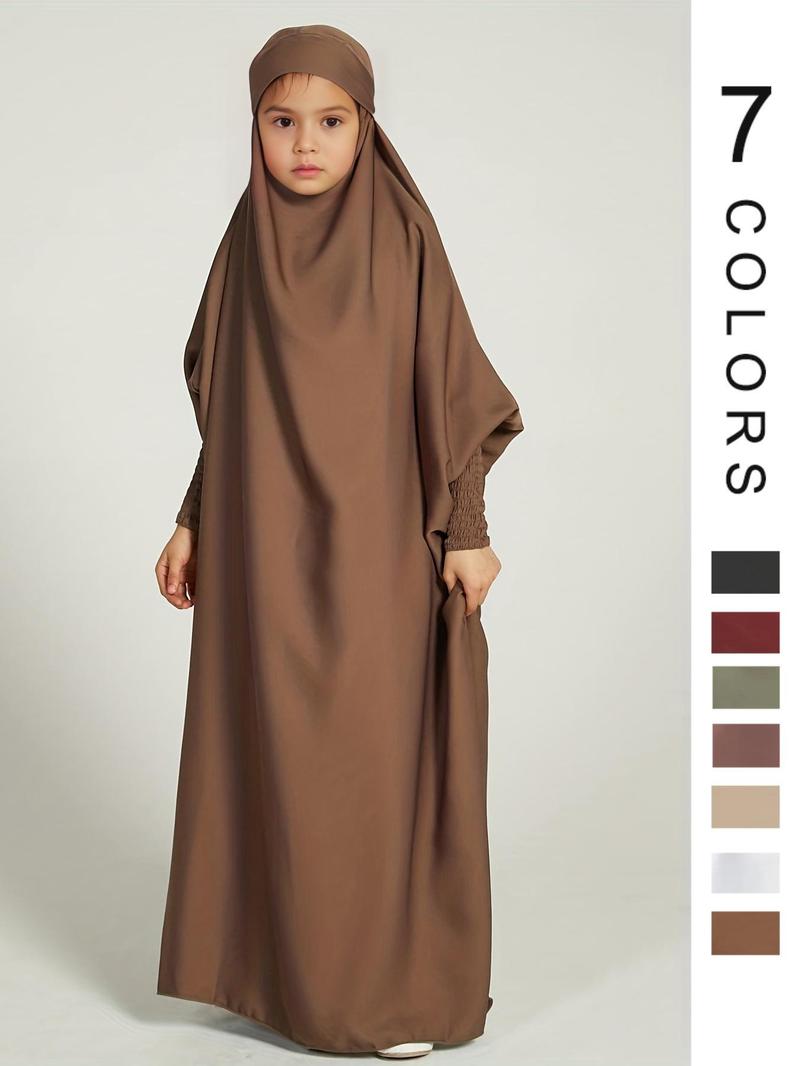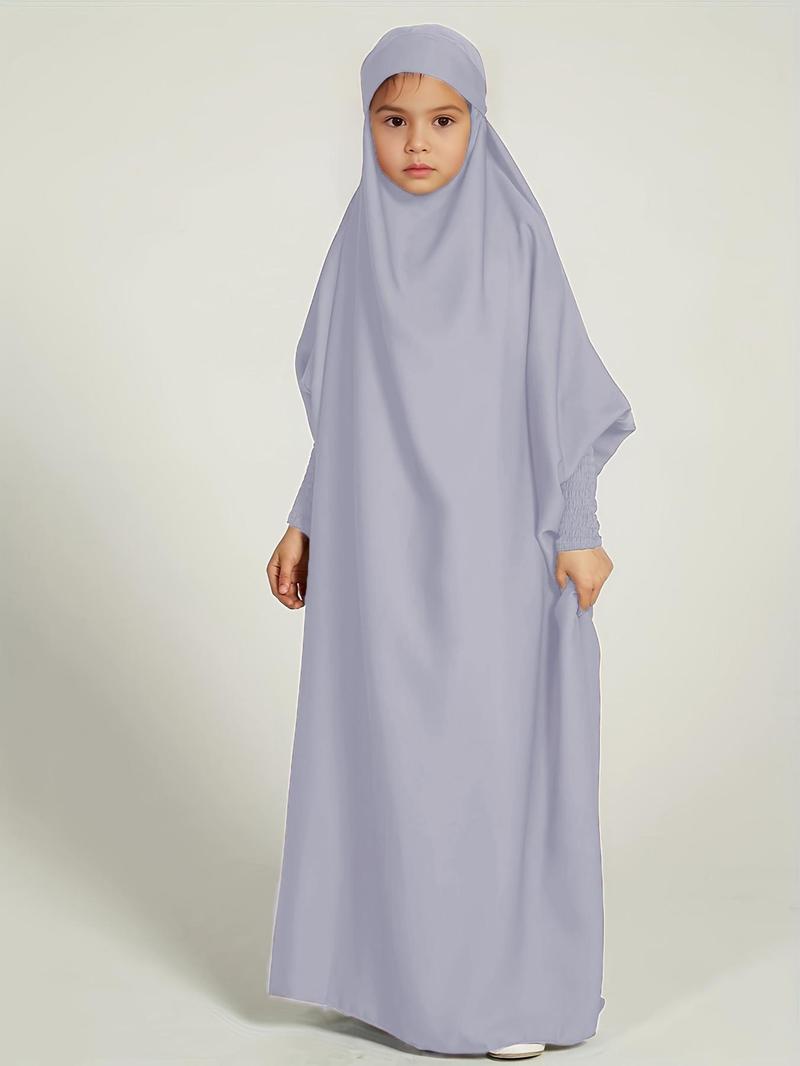 Girl'S Solid Batwing Sleeve Tie Back Hoodie Abaya Dress, Modest Outfits, Casual Long Sleeve Elastic Cuff Loose Dress for Kids, Summer Outfits 2024, Kids Clothing for Summer
