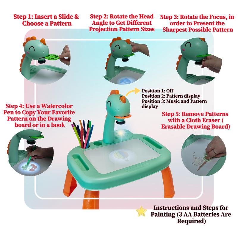 Kids' Projection Drawing Board, 72 Patterns & Music, Dinasour Drawing Projector, Limited Edition Color, Ideal for Children over 3 Years Old