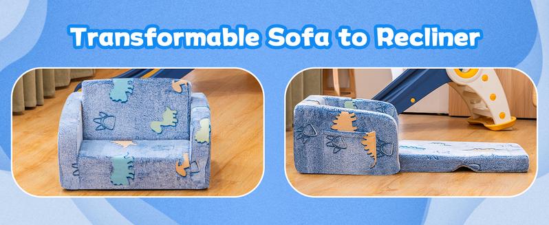 Adjustable Folding Feature: Easily adjust the backrest of the sofa to transform it into a lounger, giving kids more options for comfort—whether they are sitting, reading, or lying down to relax.