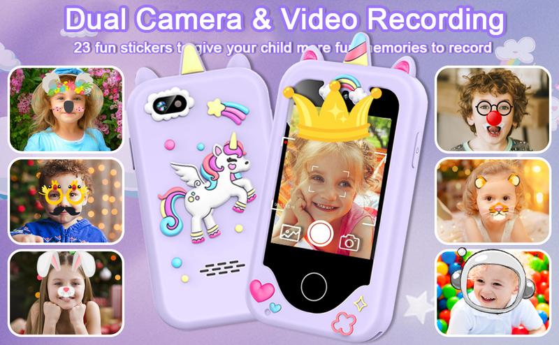 Toys Phone with 23 Cute Stickers, Dual Camera & Video Recording
